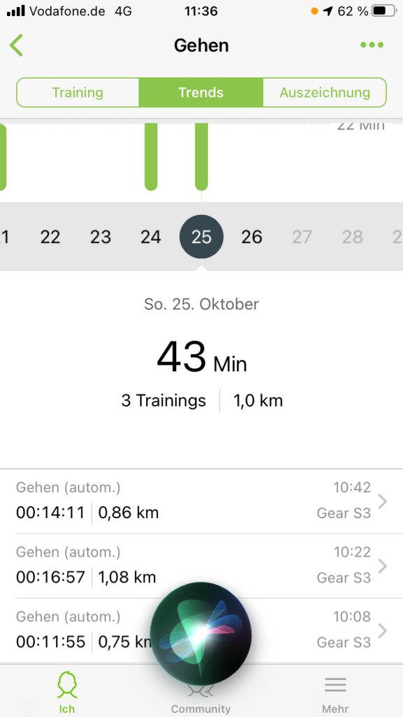 Und noch ein kleiner Erfolg. Gestern ging es einmal rund um den Pferdestall. Das ist eine Radiusvergrößerung auf 2,5 km. Schon nicht schlecht. Auch wenn zwei Pausen dabei waren.