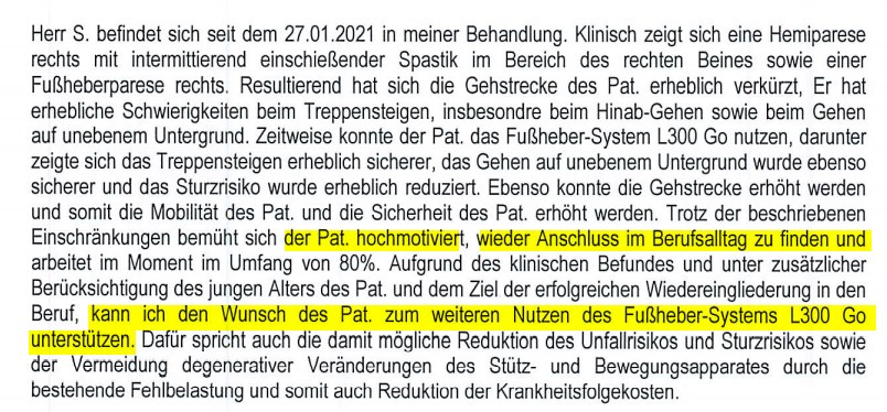 ohne Deinen Enthusiasmus bremsen zu wollen, sehe ich das Schreiben der Neurologin nicht so positiv. Die Formulierung „den Wunsch unterstützen“ ist nicht das, was der MDK lesen möchte. Besser wäre: „ist erforderlich um das Sturzrisiko zu minimieren“ oder Ähnliches. Denn den Wunsch unterstützt wohl jeder, auch die Ärzte vom MDK. Das ist aber noch nicht unbedingt ein Grund, etwas zu genehmigen.