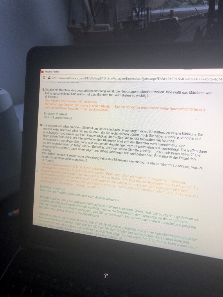 Jetzt wurde es gerade mal richtig spannend für mich. Die erste Note vom Journalistenkolleg ist eingetroffen. 2,3