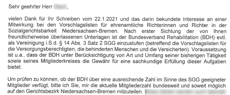 Aber auf dem zweiten Weg über den BDH tut sich was. Der Verband hat Post vor der Sozialgerichtsbarkeit Niedersachsen-Bremen erhalten. Aber schaut selber.