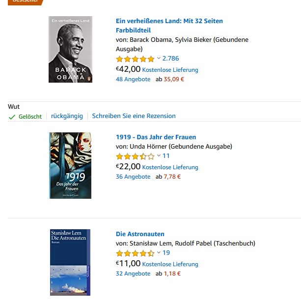 Ja, ich bekenne mich schuldig. Ich treibe mich häufig auf Amazon rum. Ich „google“ Begriffe nicht nur, ich „amazone“ sie auch (Neue Selbstwortprägung!). Kaufen tue ich dort relativ wenig, aber ich nutze die Amazon Datenbank exzessiv zu Recherchezwecken. Gibt es zu einem interessanten Thema ein Buch? Was ist mit einer Biografie zu einer interessanten Persönlichkeit? Wenn ich etwas Vielversprechendes gefunden habe, geht mein Blick auf die Rezensionen. Wie viele Rezensionen gibt es insgesamt? Viele muss aber nicht immer gutheißen. Wie lang und aussagekräftig sind die Rezensionen? Kommentar Prompte Lieferung aber die Rezension ohne Inhaltsangabe heißt bei mir, Thema verfehlt. Und dann der finale Blick auf die jeweils schlechtesten Rezensionen? Was wird dort genau bemängelt?