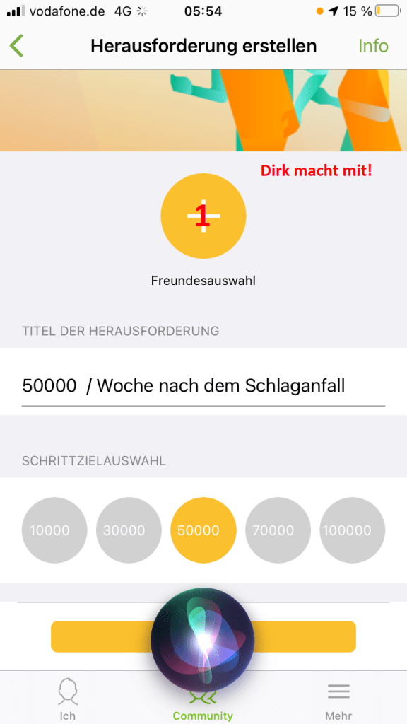 Englische Begriffe klingen immer gut, oder? Hinter der denglischen Überschrift steckt folgende Überlegung, bisher habe ich alle Übungen für die Bewältigung meines Schlaganfalls allein für mich gemacht. Aber, vielleicht gibt es ja jemanden, der ähnliche Ziele wie ich verfolgt? Und wir können uns gegenseitig pushen und mitziehen. Der/ die muss ja gar nicht direkt aus Hannover sein. Er/ Sie sollte nur auf einem ähnlichen Stand sein. Und bestenfalls eine Smartwatch oder ein Smartphone besitzen.