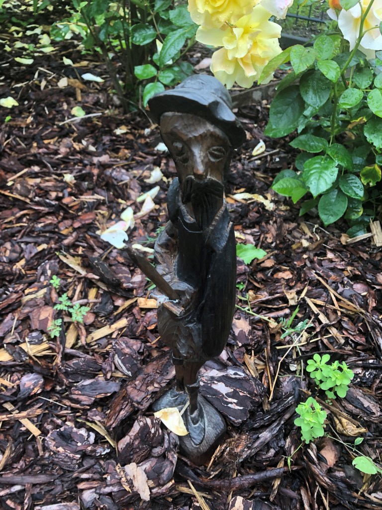 Don Quijote sitzt nun in meinem Blumenbeet und bewacht edel und tapfer unsere Rosen. Auf das du lieber Freund noch vielen Gefahren trotzt und mutig und unbeirrt deinen Weg vorangehst.