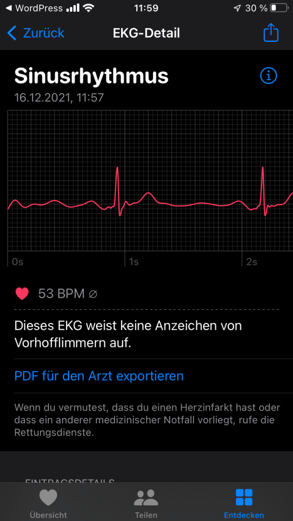 Vorhofflimmern kann das Anzeichen für einen weiteren Schlaganfall sein. Über die Relevanz der Messung habe ich in diesem Beitrag schon mal berichtet. Und wieder hatte sie einen echten Fall im Bekanntenkreis parat. Hier hat sich der Hinweis der Uhr tatsächlich durch Mediziner bestätigt.