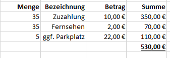 Meine persönliche Rechnung sieht etwas anders aus? Hier seht ihr die Kosten.