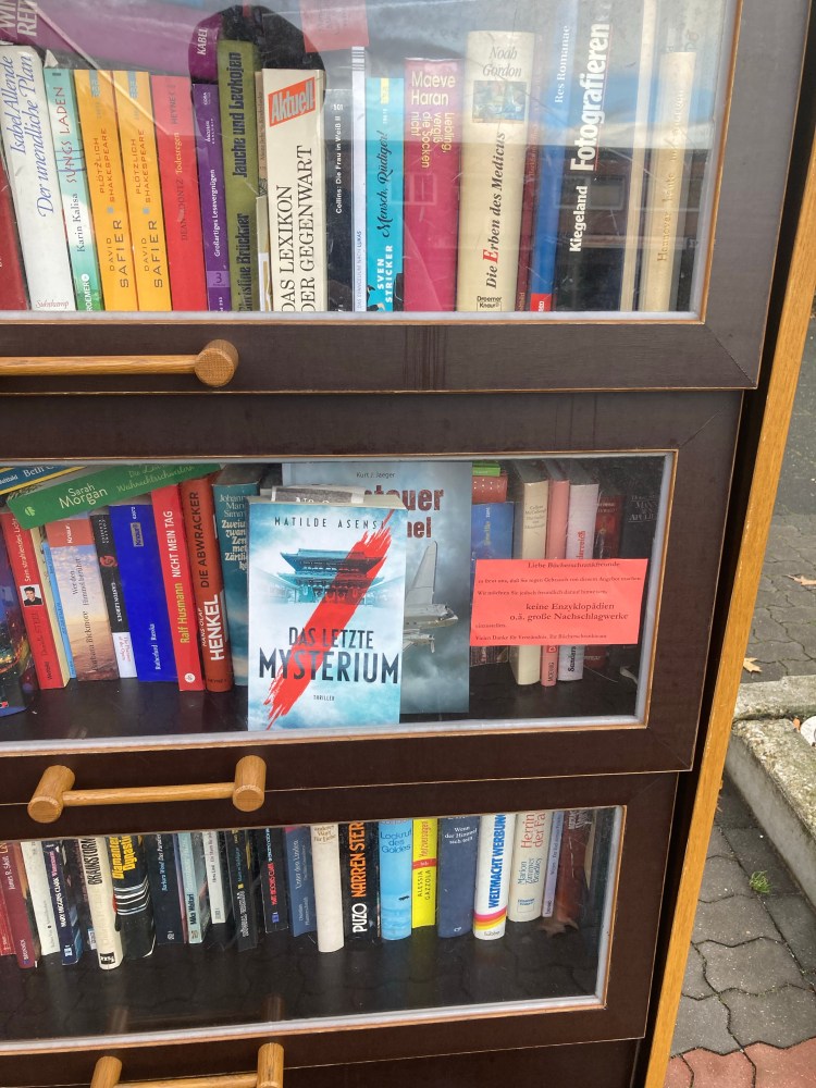 Was soll ich sagen, für nächste Woche sind zwei Bücher avisiert. Also gleich heute Morgen auf zum Bücherschrank in der Mitte unseres Stadtteils. Jetzt können die Bücher neue, temporäre Besitzer finden. Meinem Opa hätte das sicher gefallen.
