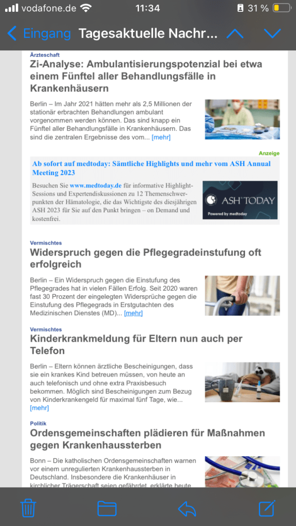 Aber viele Artikel im Ärzteblatt sind sehr allgemein gehalten und gehen uns alle an. Es ist aus meiner Sicht wichtig, sich umfassend über möglichst alle Themen unserer Gesundheit zu informieren.