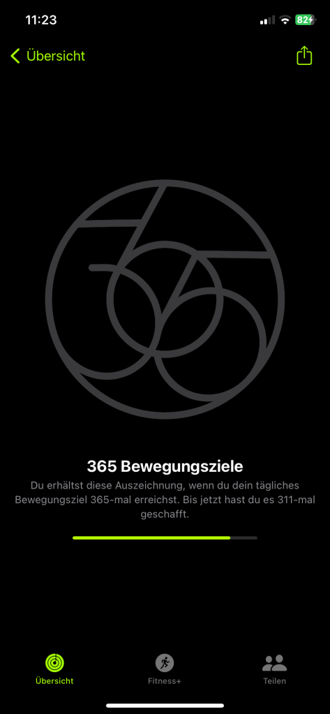 Als Nächstes würde ich gerne die 365 Bewegungsziele auf meiner Fitnessapp erreichen. Um das zu erreichen, muss ich mich in nächster Zeit möglichst viel bewegen.