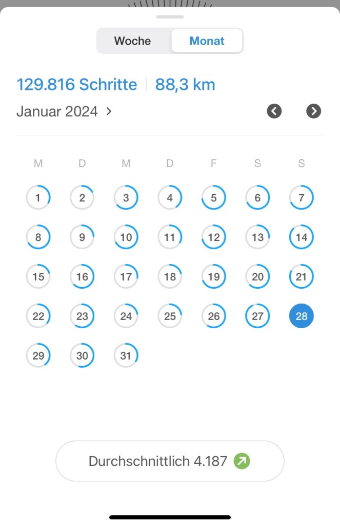 Bewegung ist so eine Sache bei mir. Eigentlich sollte es für mich nicht so schwer sein, dieses Ziel jeden Tag zu erreichen. Aber nach 8 Stunden am Rechner mit so 8 bis 10 halbstündigen Telefonaten kann ich mich häufig nicht mehr wirklich aufraffen danach noch Sport zu treiben. Da bin ich einfach nur kaputt.