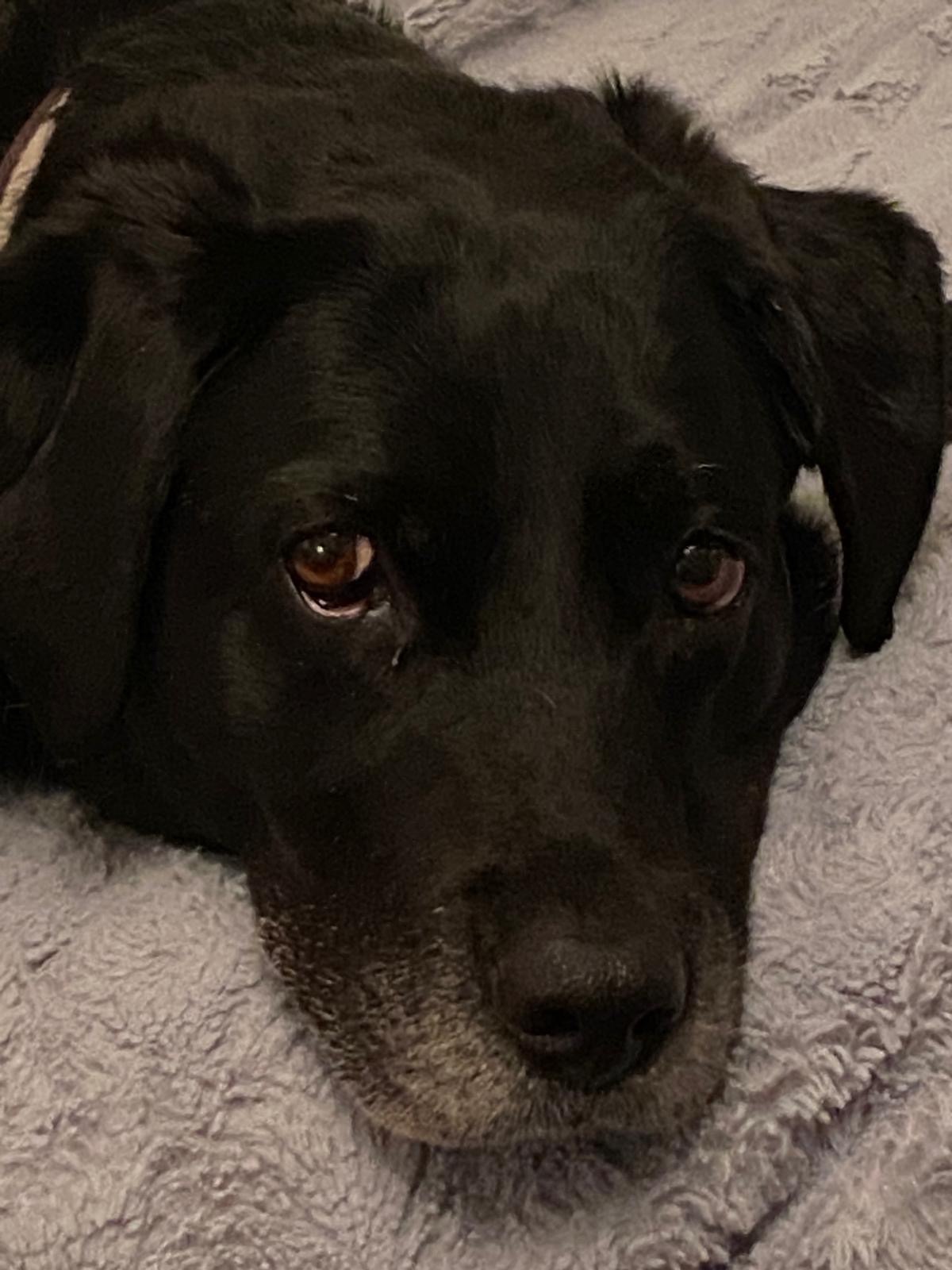 Ihr Name ist Emma, sie ist eine neun Jahre alte Hundedame. Also schon eher gemütlich von ihrem Bewegungsdrang. Aber der besterzogene Hund, den ich kenne. Und diese braunen Kulleraugen.