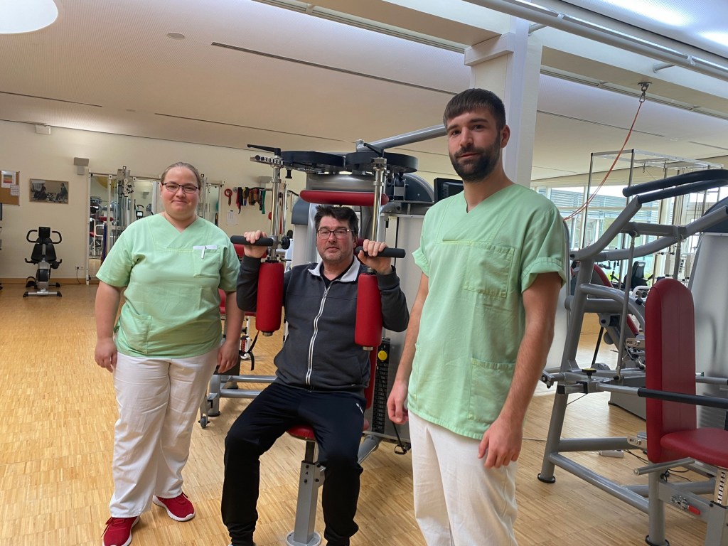Mein Sporttherapeut Florian S. hat nach dem Geräteeinstellen die Sportaktivität immer mit einem sehr kraftvollen „Sport frei“ gestartet.