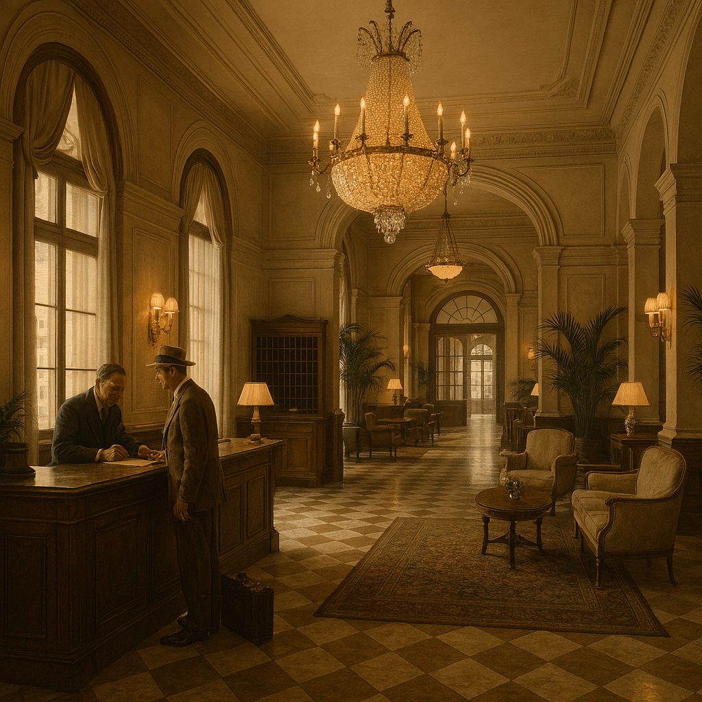 Ein handgeschriebener Meldeschein wurde mit einem Füllfederhalter ausgefüllt, während im Hintergrund ein Pianist leise Cole Porter spielte. Der Aufzug – ein vergoldeter Käfig mit rotem Samt – brachte einen langsam in den zweiten Stock, begleitet vom leisen Surren der Mechanik.
