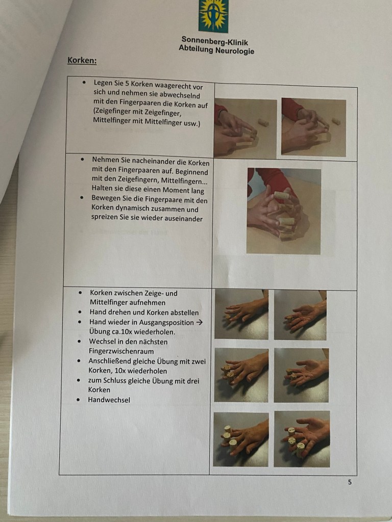 Hat sie total toll gemacht. Feinmotorik mit Hilfe von Korken für Fingerübungen. Gar nicht so einfach für mich mit der Hemiparese im rechten Arm.