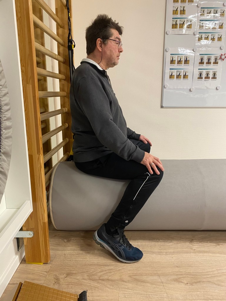 Die Bobathrolle fand ich klasse. Normalerweise sitzt der Therapeut mit auf der Rolle und bewegt sie zur Seite. Der Patient hält dann dagegen. Ich kann euch sagen, ganz schön anstrengend.