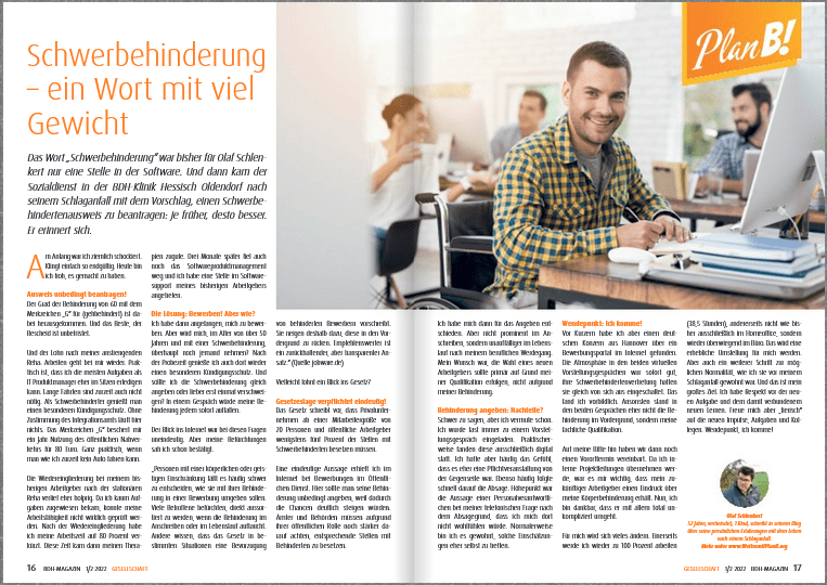 Fast hätte ich meine neue BDH Kolumne über meinen Jobwechsel zum 01.01. vergessen. Doch heute war sie im Briefkasten. Was habe ich nach meinem Schlaganfall als Schwerbehinderter erlebt? Wie verlief meine Bewerbungsphase auf der Suche nach einem neuen Job? Alles das könnt ihr auf der Doppelseite im BDH-Magazin lesen. Und es soll euch Mut machen,„Schwerbehinderung, ein Wort mit viel Gewicht“ weiterlesen